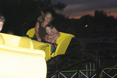 Johnathan and Nana on the Ferris wheel and Roller coaster.....